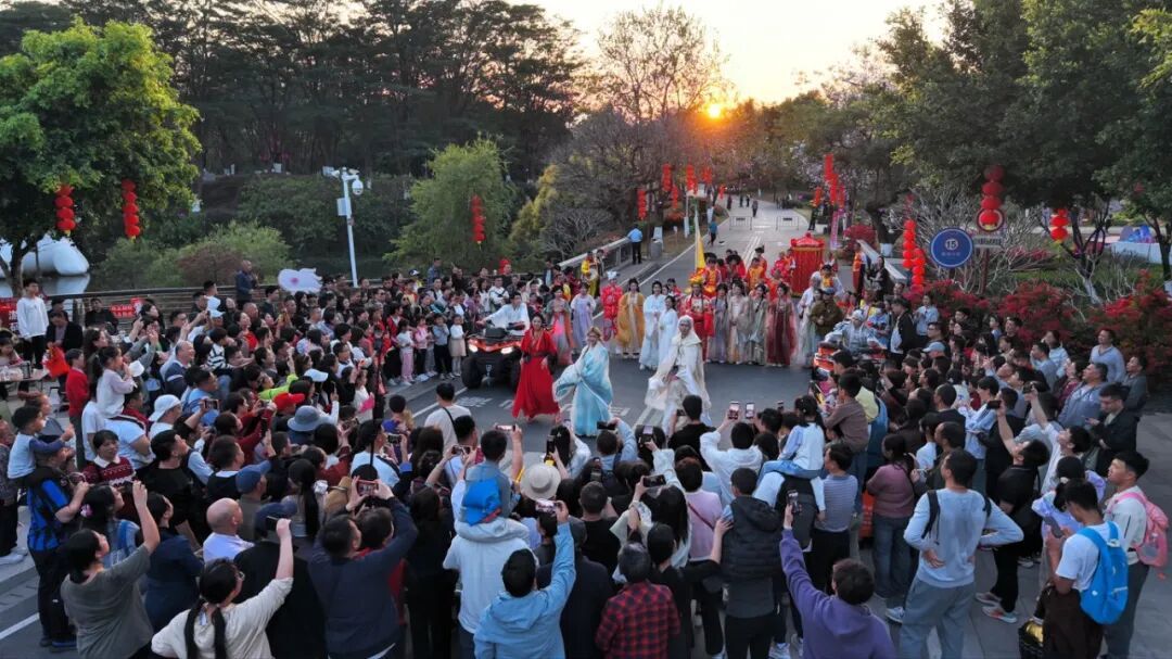 去白水寨登高,也许你会偶遇正在巡游的“神仙”队伍。他们身着华服,正忙着往你手里塞福袋呢! 这不是幻觉,这是白水寨“马上会火”主题活动为你准备的惊喜。