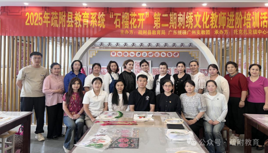 疏附县教育局党组书记付国庆同志在开班仪式上强调:“中华优秀传统文化是中华民族的精神命脉,非物质文化遗产刺绣承载着地域文化的独特魅力,传统书法更是汉字文化与民族智慧的结晶。此次‘石榴花开’书法、刺绣培训第二期的举办,既是对首期培训成果的延续,更是疏附县深化粤疆文化协作、推动传统文化进校园的关键举措。希望全体参训教师能深刻认识此次培训的重要意义,珍惜粤疆协作带来的优质学习资源,不仅要学好刺绣技艺与书法知识,更要思考如何将这些文化元素融入日常教学,让学生在潜移默化中感受传统文化之美,增强文化自信与民族认同感。”