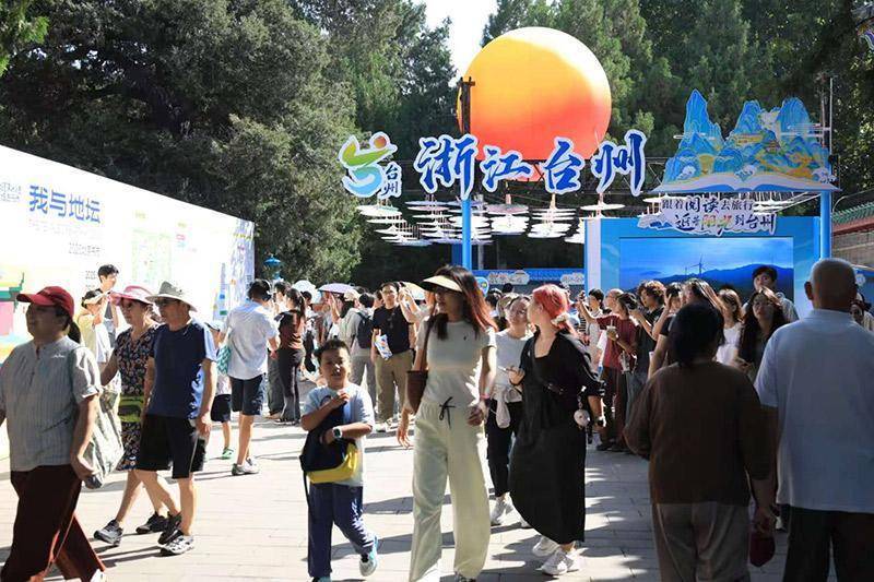 台州文旅展区位于地坛公园南门入口处泛策略,整体设计划分为三大功能专区:“台条太”休闲打卡区为游客提供了拍照留念的理想空间;“台好玩”手作互动区让参与者体验台州传统工艺;“台有礼”文创展销区则展示了独具特色的台州文创产品。此外,休闲打卡区还设置了阅读展示专区,着力推荐了《中华遗产·别有天地在台州》专刊等书籍,宣传了台州作为浙东唐诗之路目的地和《徐霞客游记》开篇之地的深厚文化底蕴。