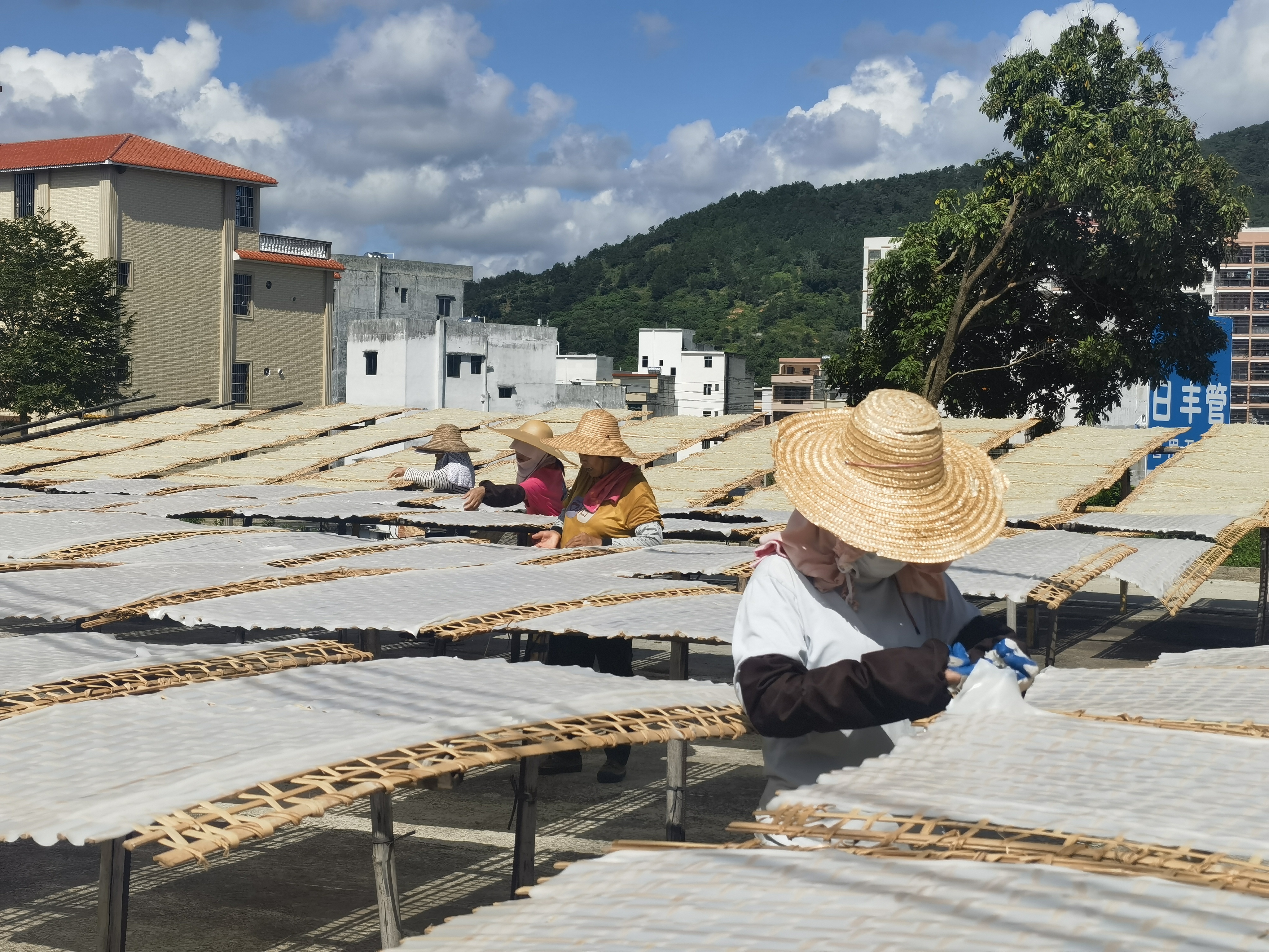 晾晒鸡仔粉。