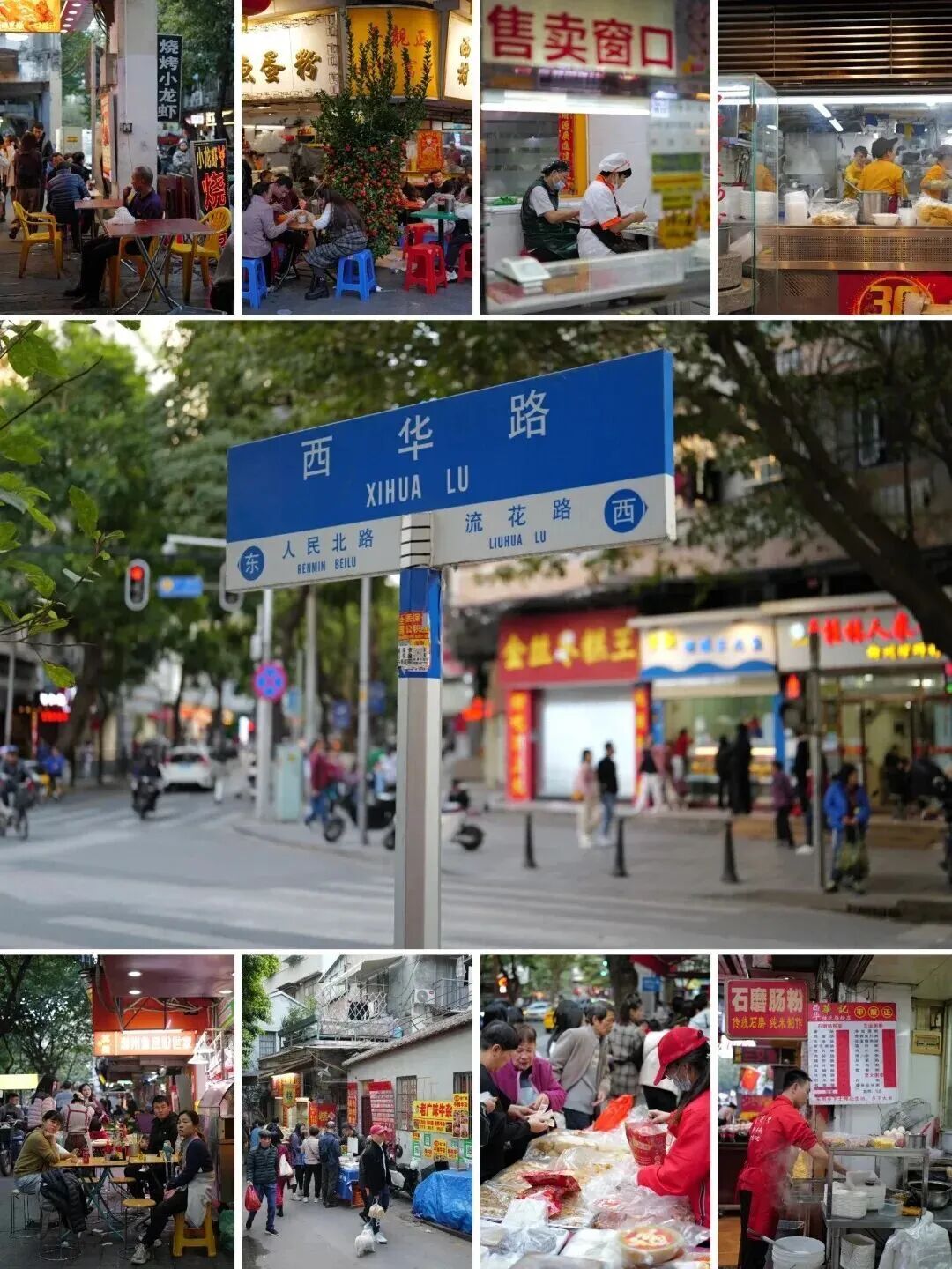 再往前是广州老饕私藏的西华路美食街。从珍珍小食店的啫啫粉,到芳记小食店的布拉肠,再到芝麻糊世家的现磨芝麻糊,全是街坊从小吃到大的味道。