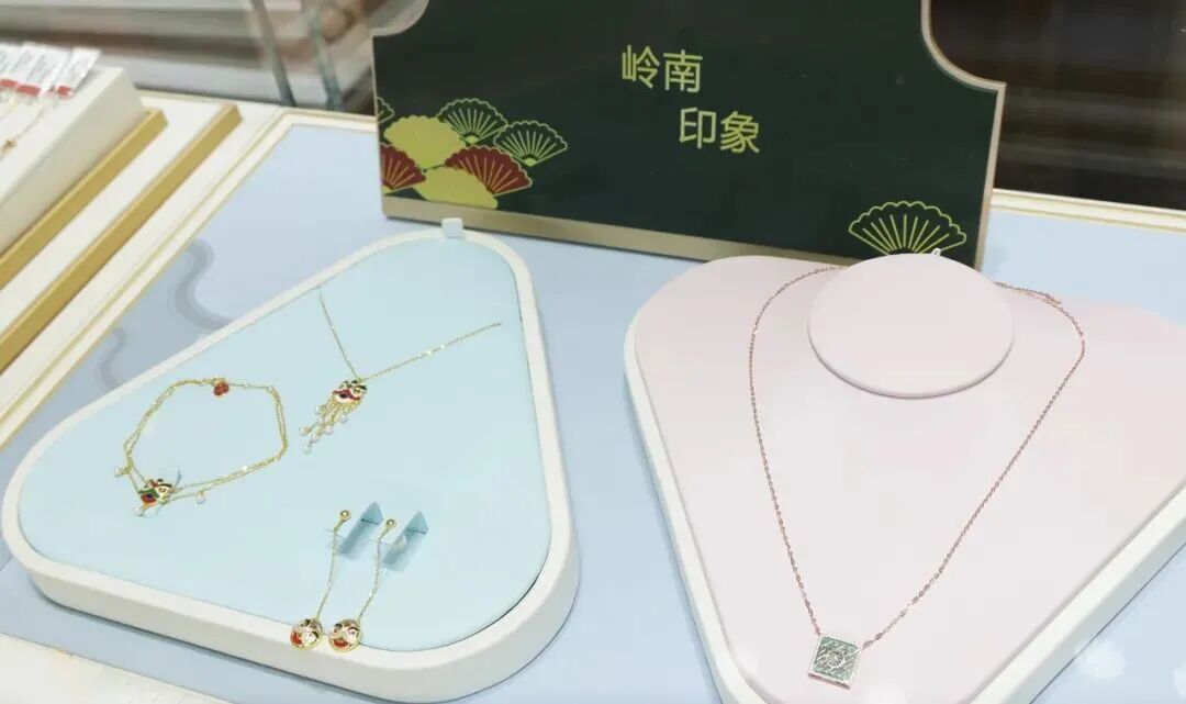 从陈家祠西门出来,走进第一福珠宝陈家祠店。这里是中华老字号的匠心空间,可以买到融入西关花窗、粤剧戏袍等元素的文创精品。